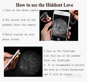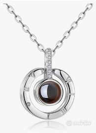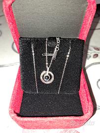 Collana con scritto "TI AMO" in 100 Lingue differenti con scatolina.Mai usata. Se si vede all'interno del ciondolo si leggeranno le scritte.