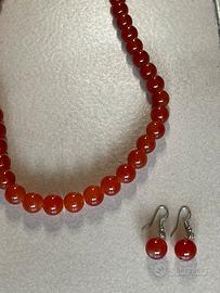 Collana con sfere rosse e orecchini pendenti nuovo Misure vedi foto