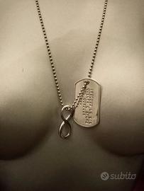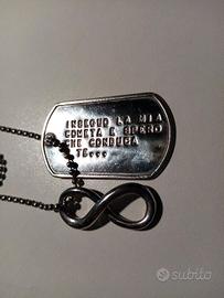 Collana con simbolo di infinito e piastrina con frase incisa