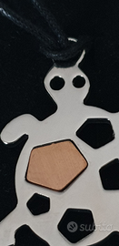 Collana in acciaio con ciondolo a forma di tartaruga e laccio in corda Con scatola originale Usata poco, ottime condizioni