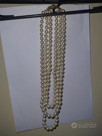 Collana con tre fili di perle Collana con tre fili di perle, con chiusura ad incastro dorato, lunga 24 cm. ( ART. BIGIOTTERIA ) In ottime condizioni .