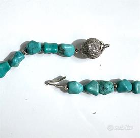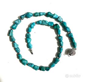 Collana, marchio Idandi, con turchesi naturali alternati a palline in argento 925 con chiusura a pallina in argento 925. Lunghezza 48 cm Con scatola originale Idandi Mai utilizzata. Nuovissima