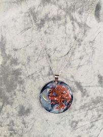 Collana Artigianale in Resina con Fiori Secchi e Luna in Vetro di Murano