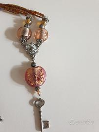 vendo bella collana con vetri di murano e dettagli in metallo, misura cm43 (dalla chiusura alla chiave)