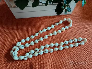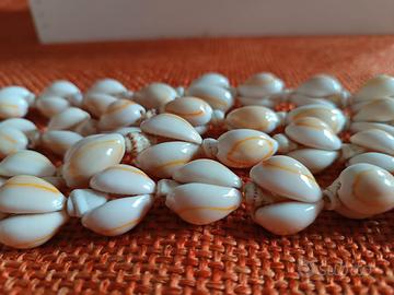 Collana con vere conchiglie dalle Filippine, vintage, di grande effetto quando indossata, lunghezza (da chiusa) 69 cm, si può indossare lunga o doppia