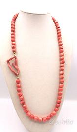Rosa-aranciato per questo collier perfetto per l'estate, e non solo, al mare e in città, in Corallo bamboo con inclusione di ramo di Corallo nobile del Mediterraneo. Cm. 74 Pezzo UNICO ! Spedizione GRATUITA !