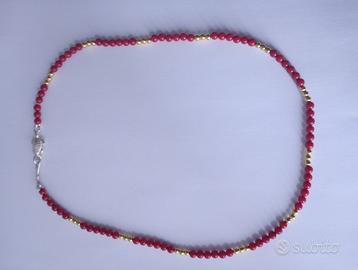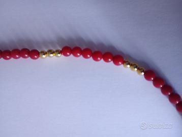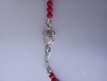 bella collana vivace di corallo bamboo rosso 4mm con ematite placcata oro 3mm con chiusura a forma di piccola tartaruga in argento 925 lunghezza 46 cm passione e colore x un gioiello da serate estive