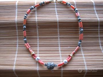 Antica collana di corallo di Sciacca naturale,con inframezzi e fermaglio d'argento 800 e argento 925 placcato oro,ogni elemento è fatto e lavorato a mano,il corallo è della fine'800 gli inframezzi sono originali anni'50,molto bella davvero dal vivo 10 volte di più.Misure : lunghezza aperta cm 45,la sfera centrale misura cm 1,5 di diametro,peso grammi 33,la propongo a soli 15 euro al grammo,,ovviamente il corallo costa ben di più al grammo = prezzo occasione!.Pezzo unico,condizioni perfette.Spedisco ovunque,la consegna avviene tra le 24 ore e i 5 giorni,secondo la formula che sceglierete.