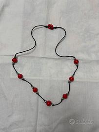Collana cordino e perle vetro rosso