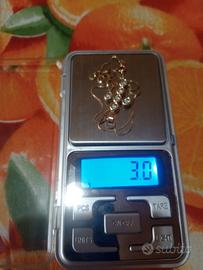 collana lunga 45 cm con pendente croce con zaffiri bianchi lunga 2 cm tutto in oro giallo 14kt 585