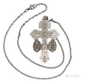 Collana con crocifisso di Gesù, medaglia di San Bendetto e medaglia miracolosa di Maria da Rue du Bac, sacramentale.