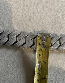 💎 Descrizione Condizione: Nuova – mai indossata (spedita per errore nella misura sbagliata dal venditore) Dettagli: Stile: Iced Out Cuban Link Chain Colore: Argento (look argentato) Larghezza: circa 29 mm Lunghezza: circa 22 pollici (circa 56 cm) Peso: circa 761 grammi Pietre: Zirconi (CZ) – incastonati, non incollati File: 7 file di zirconi, molto dense e luminose Materiale: Lega con placcatura color argento Chiusura: Sicura a scatola Condizioni: Nuova e mai indossata, solo aperta per controllo 📋 Motivo della vendita La collana è completamente nuova e mai utilizzata. La vendo solo perché il venditore mi ha inviato per errore questo modello invece di quello che avevo ordinato. Ha una piccola ammaccatura vicino alla chiusura, un difetto di fabbrica che non si nota né in foto né in video e non influisce minimamente sull’estetica o sull’uso della collana. 💡 Qualità e confronto con altri modelli Avendo fatto molte ricerche e diversi acquisti di collane simili, ho scoperto che la maggior parte delle versioni economiche: sono più sottili e leggere, hanno zirconi incollati che col tempo si staccano, e risultano meno dense, con solo 4 file di pietre che le fanno sembrare plasticose o finte. 👉 Questa, invece, è una collana di livello superiore: ha 7 file di zirconi incastonati uno a uno, molto più fitta, brillante e realistica. Il risultato è un effetto diamante autentico, con una sensazione solida e di alta qualità. ✨ Caratteristiche principali: 💎 Zirconi incastonati con precisione (non incollati) 🔹 7 file di pietre per un effetto pieno e realistico ⚖️ Peso importante (761 g) per una sensazione di qualità 🎁 Ideale per Hip-Hop, Streetwear o look appariscenti 🆕 Nuova, mai indossata, venduta solo per errore di spedizione 📦 Spedizione Spedizione dall’Italia 🇮🇹 Imballaggio accurato e sicuro Consegna in tutta Italia ed Europa Vendita da privato – nessuna garanzia o reso.