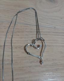 Collana cuore argento e brillantini