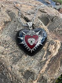 Collana fatta a mano, in acciaio inox regolabile,cuora fatto in resina collane circonferenza 45cm (regolabile) Ciandolo:5cmx5cm #collane #gothic #goth #girl #unisex #collanadonna #collanagotica #gotica #donna #uomo #dark #darkaesthetic #darkfashion #darkfashion