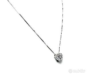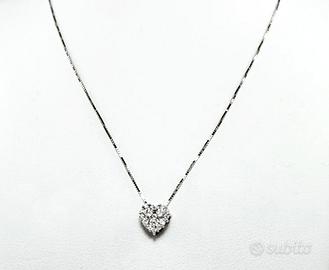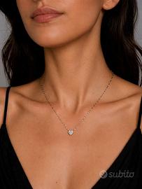 Collana in oro 18kt con pendente in oro 18kt e diamanti naturali Gioiello raffinato dal design essenziale, impreziosito da un ciondolo a cuore luminoso e delicato. Il pendente, dalle dimensioni contenute (circa 0,5 x 0,5 cm), è realizzato con una composizione di diamanti che creano un elegante effetto pavé, capace di catturare la luce con discrezione. La catena sottile valorizza il punto luce centrale, rendendo il gioiello perfetto sia per l’uso quotidiano che per occasioni speciali. Il risultato è un accessorio minimal ma sofisticato, ideale per chi cerca un tocco romantico senza eccessi CARATTERISTICHE DEL GIOIELLO Oro 18kt Diamanti naturali 0.14ct VS/G Peso 1.70g Doppio anello di regolazione lunghezza Il gioiello viene venduto con certificato gemmologico e di garanzia.