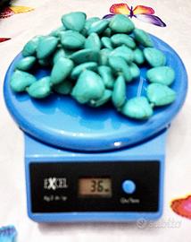 Collana in pasta di turchese formata da cuori annodati singolarmente, a taglio regolare. MISURE: - Lunghezza totale della collana cm 90. - Grandezza Cuori cm 2x2. - Peso 36gr Può essere indossata in diverse opzioni: lunga, annodata o a doppio giro. Ideale per aggiungere un tocco di colore a un look semplice o per risaltare l'abbronzatura. Stato: in perfetto stato. Non ha la chiusura, è tutto un giro di cuori, essendo lunga si indossa e si toglie con grande facilità. Ritiro a mano in zona San Paolo (ore pasti) o spedizione veloce (non con Poste Italiane).