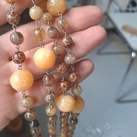 Collana fatta a mano fatta con filo d'argento e pietre dure:agata incisa e calcite. Pezzo unico. Lunghezza 140cm