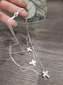 Meravigliosa collana a tre fili a cascata. Interamente in argento 925, anni 80. Superba.