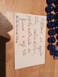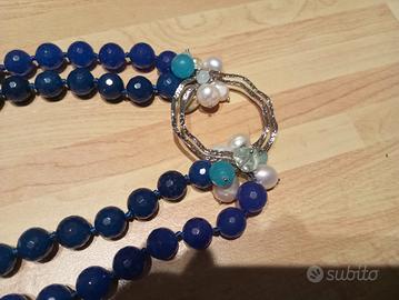 Collana di agata calcedonia con perle di fiume coltivate colore acquamarina con fermaglio in argento92i5. Lunghezza collana filo lungo 70 cm, lunghezza filo corto 68 cm circa. Prezzo trattabile.