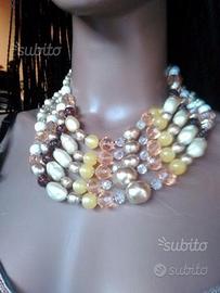 Collana di alta bigiotteria, vintage, a cinque fili di perle diverse. Anni '60. Prezzo in privato