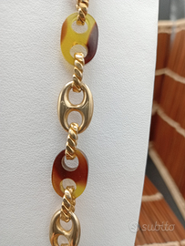 Bellissima collana , vintage,fatta a catena con chiusura di sicurezza composta da maglie marinare colore oro alternate ad anelli a torciglione e altre maglie marinare in simil tartaruga firmata bijoux Cascio.