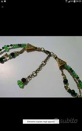 PROPONGO IN VENDITA per euro 130.oo splendida collana realizzata completamente a mano da Artigiana MAESTRA di bigiotteria artistica. Cabochon in Vetro creato completamente a mano con fata che dorme. Tonalita tutta sul VERDE. Metalleria ottonata. Cristalli verdi ed altro nella lavorazione perfetta. (No plastica!!!!) COMPLETAMENTE NUOVA. Perfetta da regalare, regalarsi o su uno splendido abito da Sposa stile fiaba che riporti il verde. Il cabochon è grande all'incirca 6 cm, la misura della collana si aggira sui 48 cm. Una OPERA D'ARTE D'ARTIGIANATO per chi ne capisce.