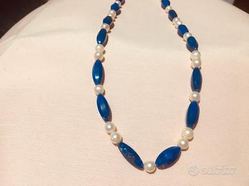 Collana di Lapislazzuli e Perle di fiume assemblate da un' orafo famoso di Roma.