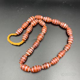 Collana di 3 perle di vetro africane e indiane e cordino.
