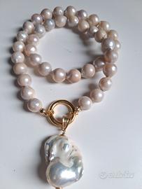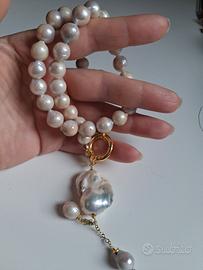 collana di perle naturali e ciondolo di perla scar