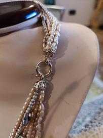 il gioiello è di mia produzione, montato con 7 fili di Perle , ungo circa 55 cm circa il filo più corto.