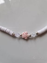 Collana Donna Con Fiori Di Ceramica Choker 💙 LuaCreazioni 💙. Ideata e realizzata da LuaCreazioni. Lunghezza 40 cm. Rondelle di argilla polimerica Fiori di ceramica smaltata Perline di resina argento