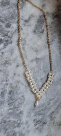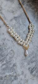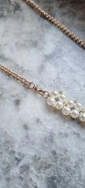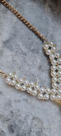 Collana di perline fatta a mano bianche e dorate con catenina dorata con moschettone laterale invece che dietro come si nota in foto.