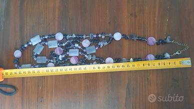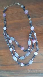Collana a tre fili, fatta interamente di pietre dure. Colori lilla e viola, bellissima per la primavera e l'estate #fashion #woman #look #spring #summer