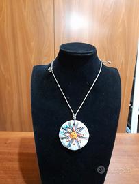 collana regolabile con pietra in ceramica Margherita disegnata e dipinta a mano di tanti colori la misura della pietra 6 cm tutta integra