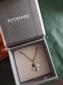 collana donna Brosway in acciaio con charm quadrifoglio e cristalli Swarovski. Lunghezza cm 46