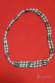 Vendo collana con pietre azzurre e calamitate. Grazie alle calamite la collana può essere utilizzata anche come girocollo o bracciale.