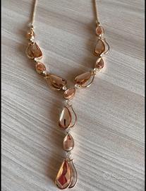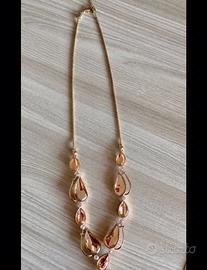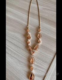 Collana donna con strass e pietre dure, color rosa cipria e dorato, semirigida, lunghezza totale 72 cm più 10 cm pendenti, in ottime condizioni. Prezzo 8€ escluse ss.