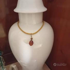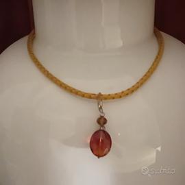 Vendo una collana da donna corta usata ma tenuta bene Cordoncino in pelle color senape e pendente in pietra di 《 CORNIOLA 》 colore marrone Posso consegnare a mano di persona a SAN GIOVANNI LUPATOTO. NON SPEDISCO *