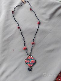 Collana artigianale all'uncinetto con ciondolo in pasta polimerica Dimensioni ciondolo 4cm, lunghezza collana 40cm