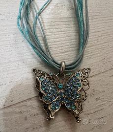 Collana donna di bigiotteria con farfalla turchese