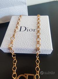 bellissima collana Dior con logo color oro con scatola e busta nuovo
