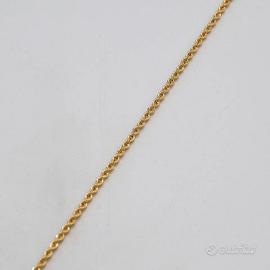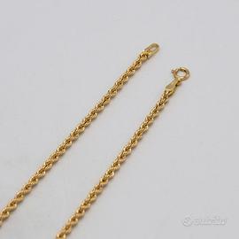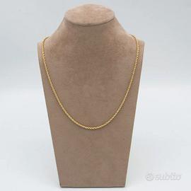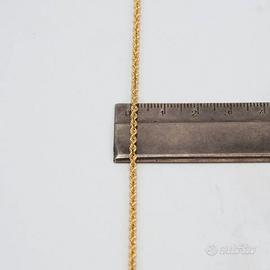 Collana donna in oro giallo 18 kt grammi 2,3 lungo cm. 45 a cordoncino ritorto. Prodotto made in Italy munito di marchio di fabbrica come da legge e completo di confezione e certificato di qualità rilasciato dalla Gioielleria.