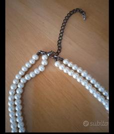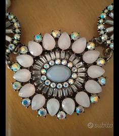 Collana di pietre e perline, con bel fiore centrale, di grande effetto, molto elegante.