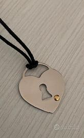 Questa collana presenta un ciondolo a forma di cuore con un foro a forma di serratura