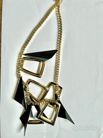 Collana donna Vintage anni ‘80 con forme geometriche oro e nere, ancora in ottime condizioni