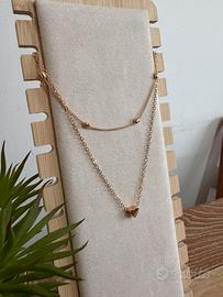 Collana Doppio Filo Oro Con Cuore - Nuova
