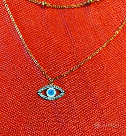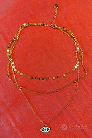 Collana dorata 3 fili con ciondolo Occhio