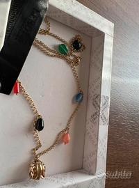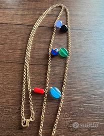 Collana indossata in 2 occasioni realizzata in argento dorato, lunghezza 70 cm; pietre naturali ed elementi in argento galvanizzato oro.