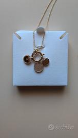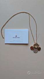 Collana dorata con tre pendenti Swarovski, completa di certificato di autenticità. Scatola originale.