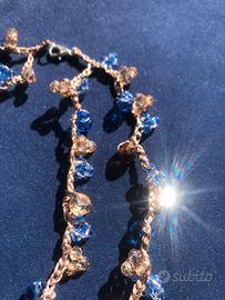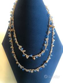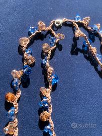 Collana a due fili in filo intrecciato con metodo uncinetto e perle in vetro. Nuova, fatta a mano con misura lunghezza visibile in foto.